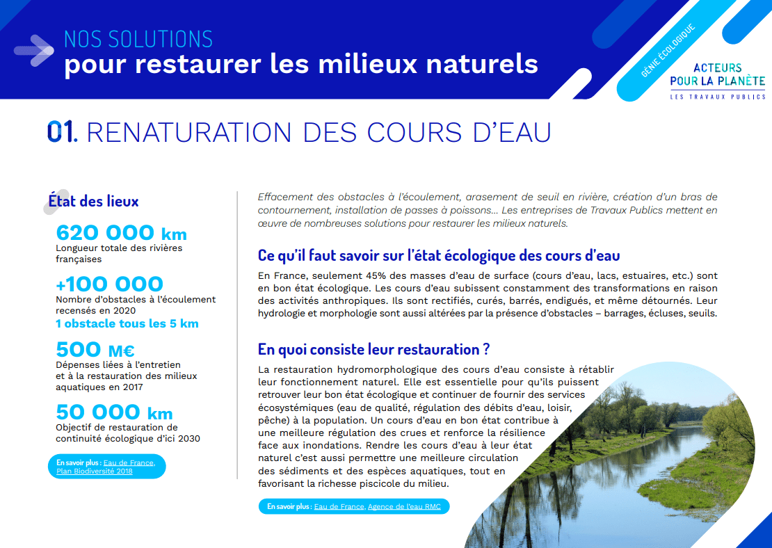 continuité aquatique sur 50 000 km de cours d’eau à 2030, ainsi que la mise aux