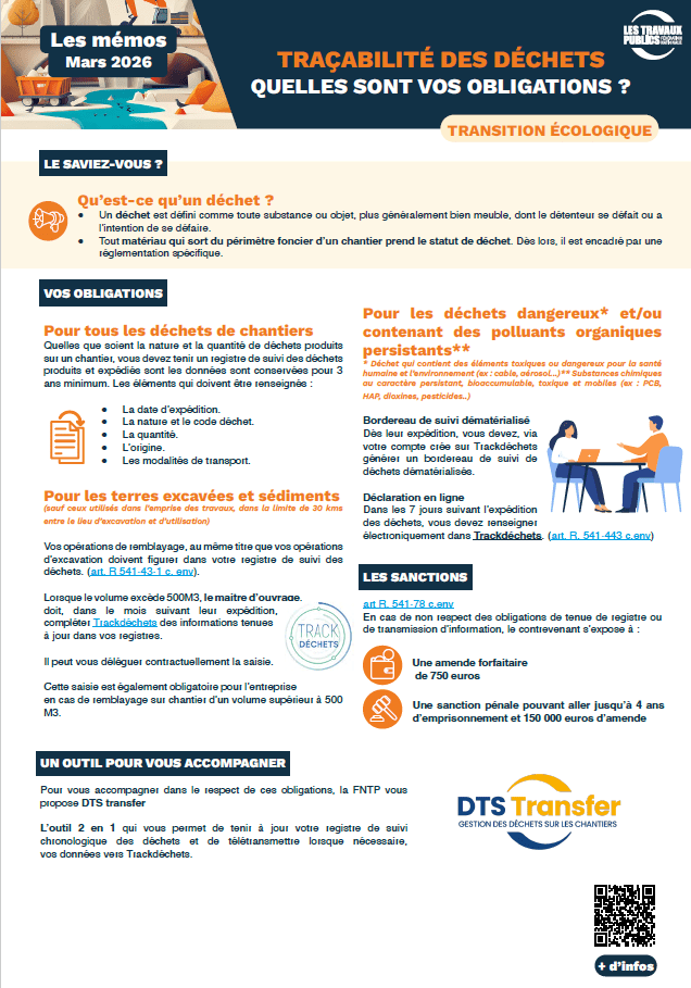 Déchets de chantier : l’essentiel pour bien les gérer : consultez le mémo de la FNTP.